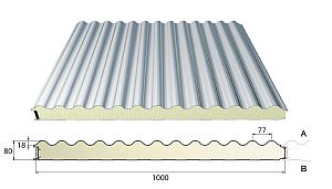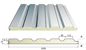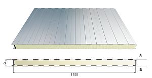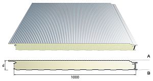 Sandwich-Paneele bestehen aus zwei flachen oder profilierten Metallplatten, die als Basis thermisch verzinkt sind und mit einer Polyesterbeschichtung versehen sind (Schichtdicke innen 15 µm und außen 25 µm).